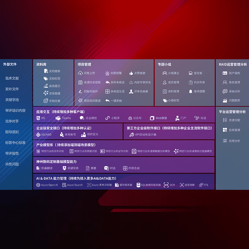 医疗器械产品上市前,,,,要熟悉严格与繁复评审标准,,,,整理分析监管机构指导文件中的海量信息。。。企业急需一个智能化解决方案,,,提升知识管理效率,,,,提高评审通过率,,,,以提升其市场竞争力。。
